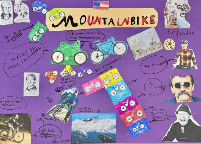 Innerhalb eines Projekts in den Atelierstunden setzten sich die Schülerinnen und Schüler der Rad-Klasse 5.3 in Arbeitsgruppen mit den Meilensteinen der Fahrradgeschichte auseinander.
